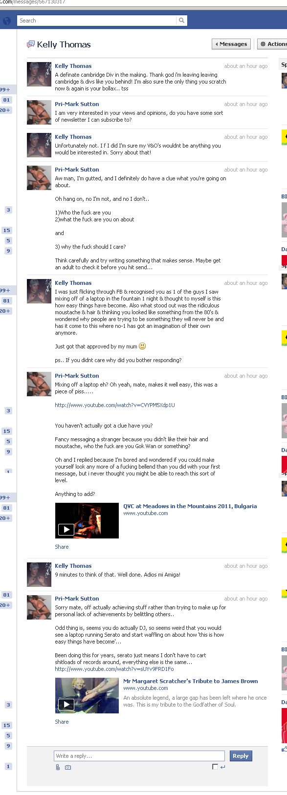 I apparently don’t scratch anything apart from my balls, I want to be something from the 80s with my ridiculous hair and moustache, and Serato does everything for me. Fuck knows who Kelly Thomas is, but his out of the blue message fucking nailed it…